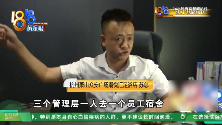 杭州萧山众安广场潮悦汇足浴店苏总:趁他们不注意的情况下,我们是偷偷去翻的,三个管理层一人去一个员工宿舍。作为一个店家,你怀疑我们的员工偷东西,那么我们也要积极配合查出真相是不是,如果找到的话何必这么麻烦呢?