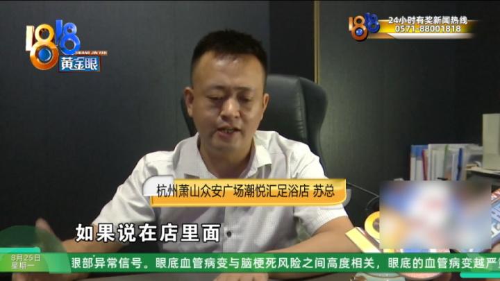 杭州萧山众安广场潮悦汇足浴店苏总:如果说在店里面,还没离店情况下,说你手表不见了,那么这个我们嫌疑是最大的,但是她回家发现了。所以说昨天派出所我们也去了,口供也录了,那么这边公安机关也介入进来了,我们需要等到实时的一个东西了。